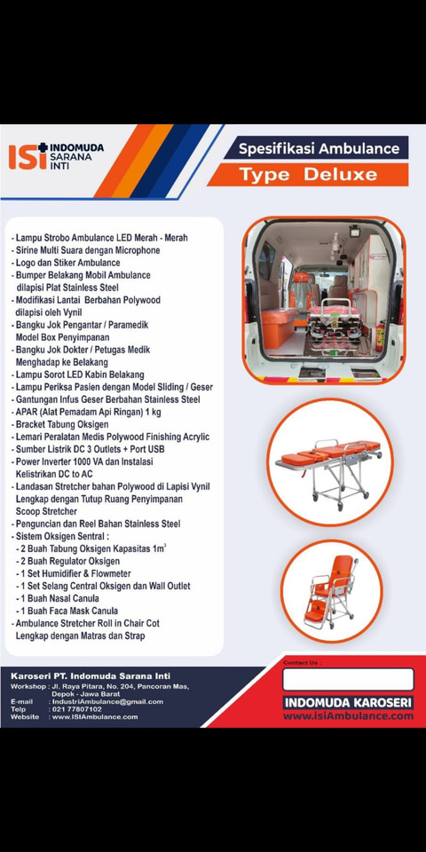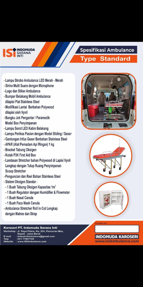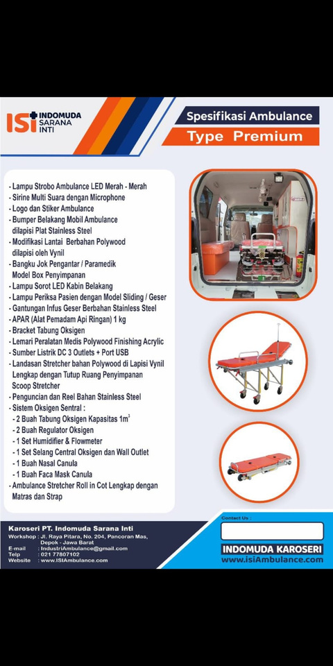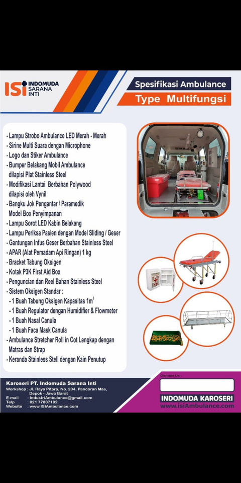 "Kami adalah perusahaan karoseri yang khusus memproduksi dan menjual Mobil ambulance selain itu kami juga melayani perakitan karoseri modifikasi mobil ambulance jadi siap pakai baik yang dibangun dari mobil baru ataupun mobil second. Perusahaan kami sudah berpengalaman sejak Tahun 2011 dalam pengerjaan karoseri ambulance, modifikasi ambulance dan penyedia unit ambulance. Kami juga menyediakan Ambulance Ready Stock siap pakai untuk pemakaian di seluruh Indonesia"